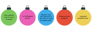 - Organiser stays free night prior to the event on a bed & breakfast basis